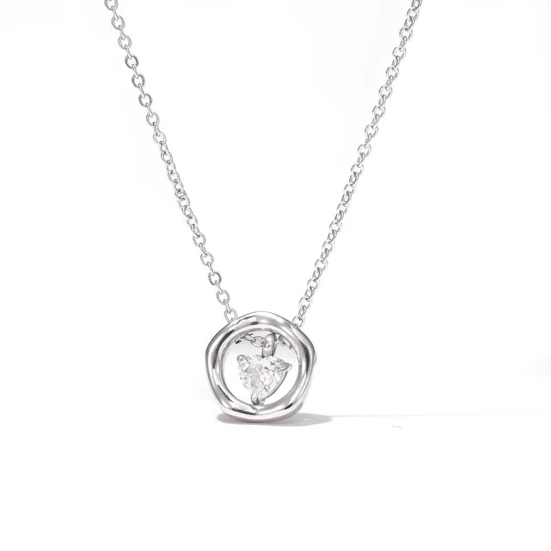 Ασημί Κολιέ Με Μοτίφ Ζιργκόν Καρδιά – Ανοξείδωτο Ατσάλι