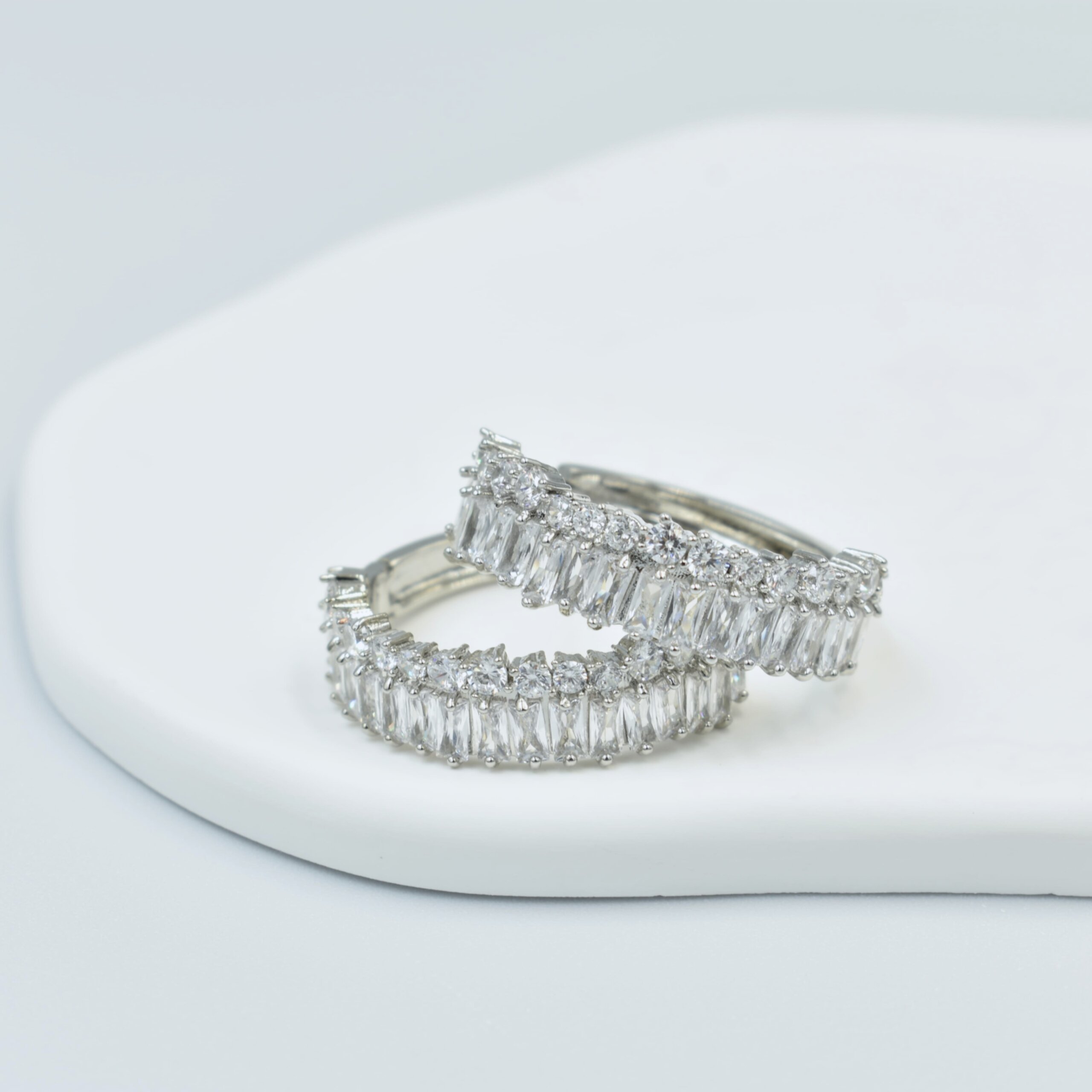 Ασημί Κρικάκια Μεγάλα Με Ζιργκόν – Ανοξείδωτο Ατσάλι