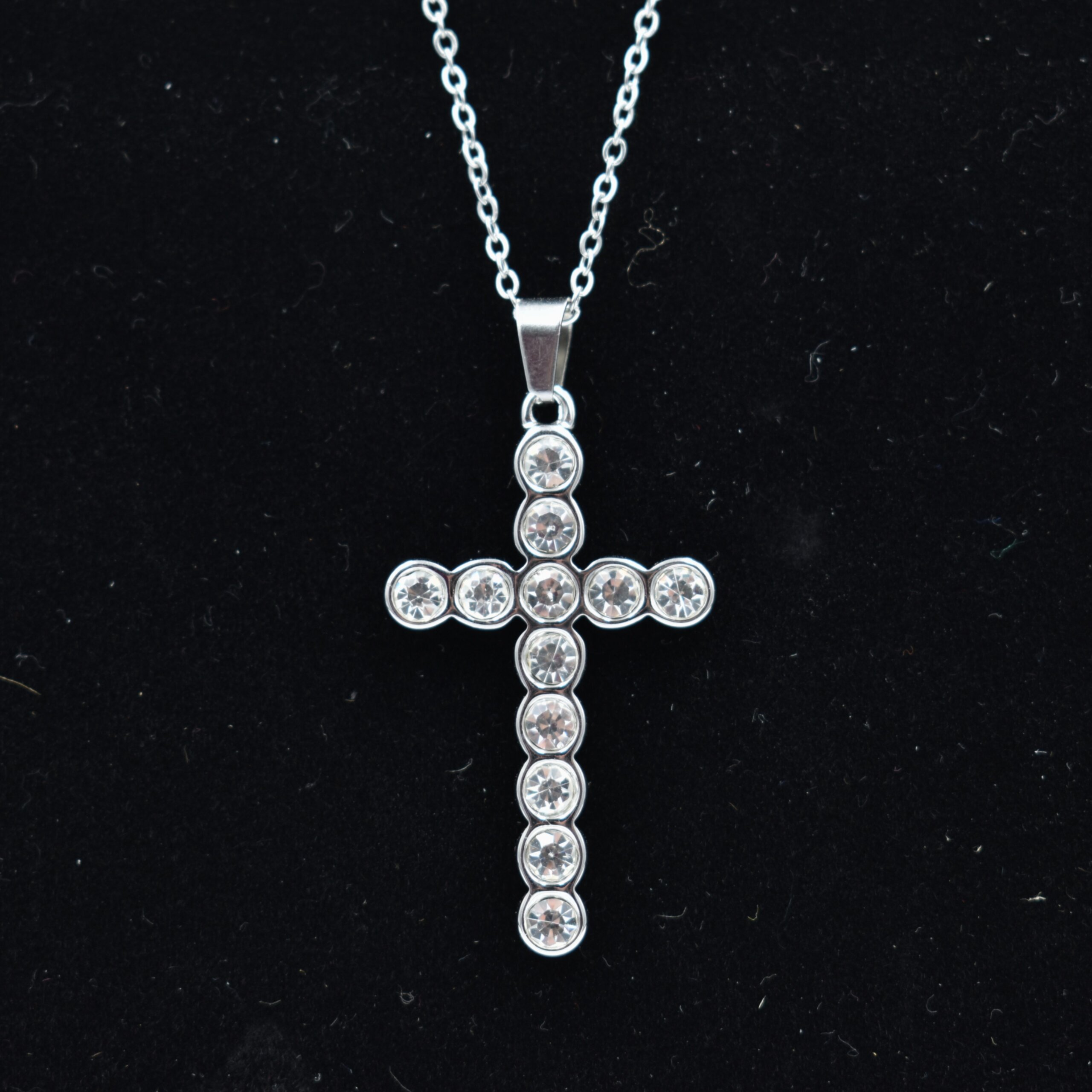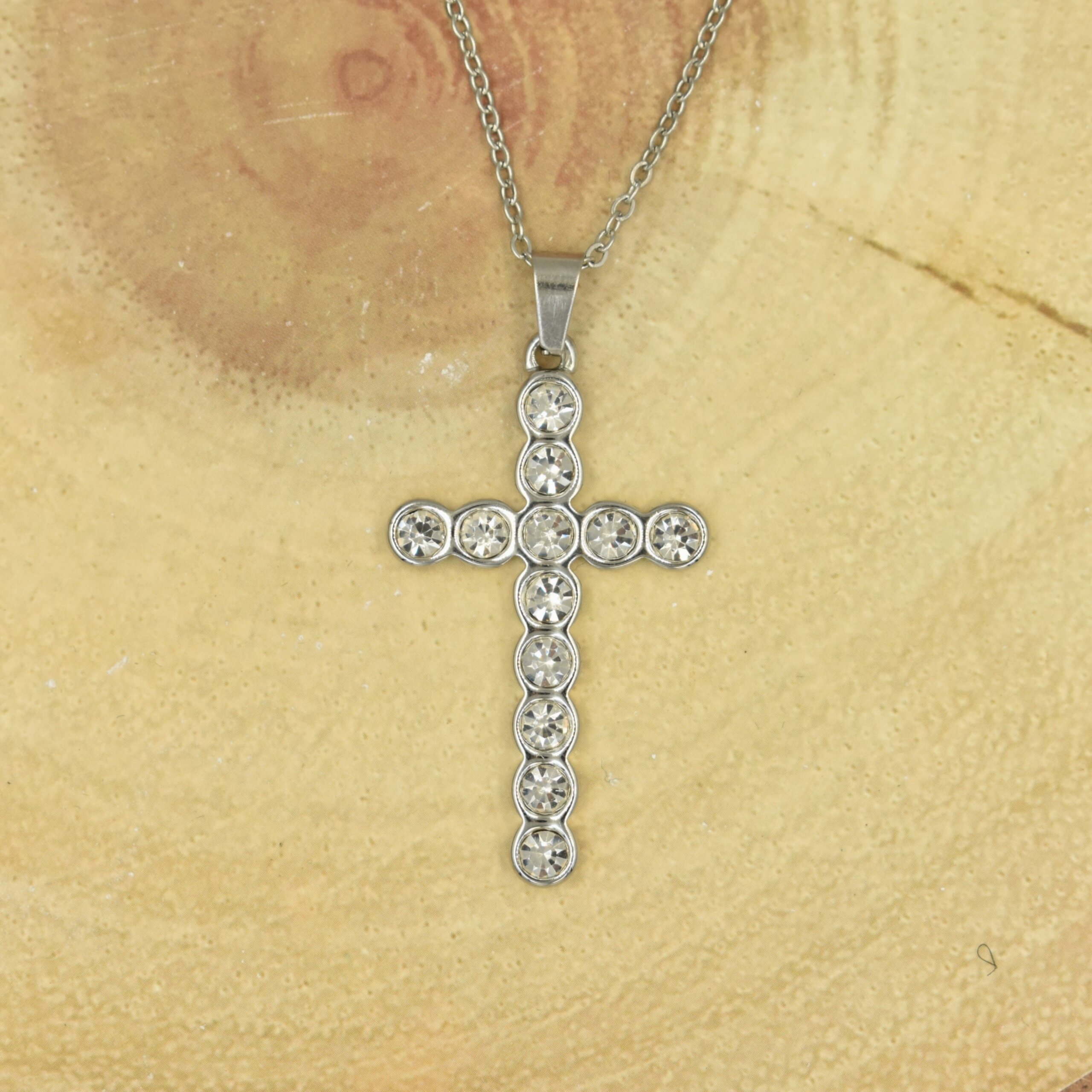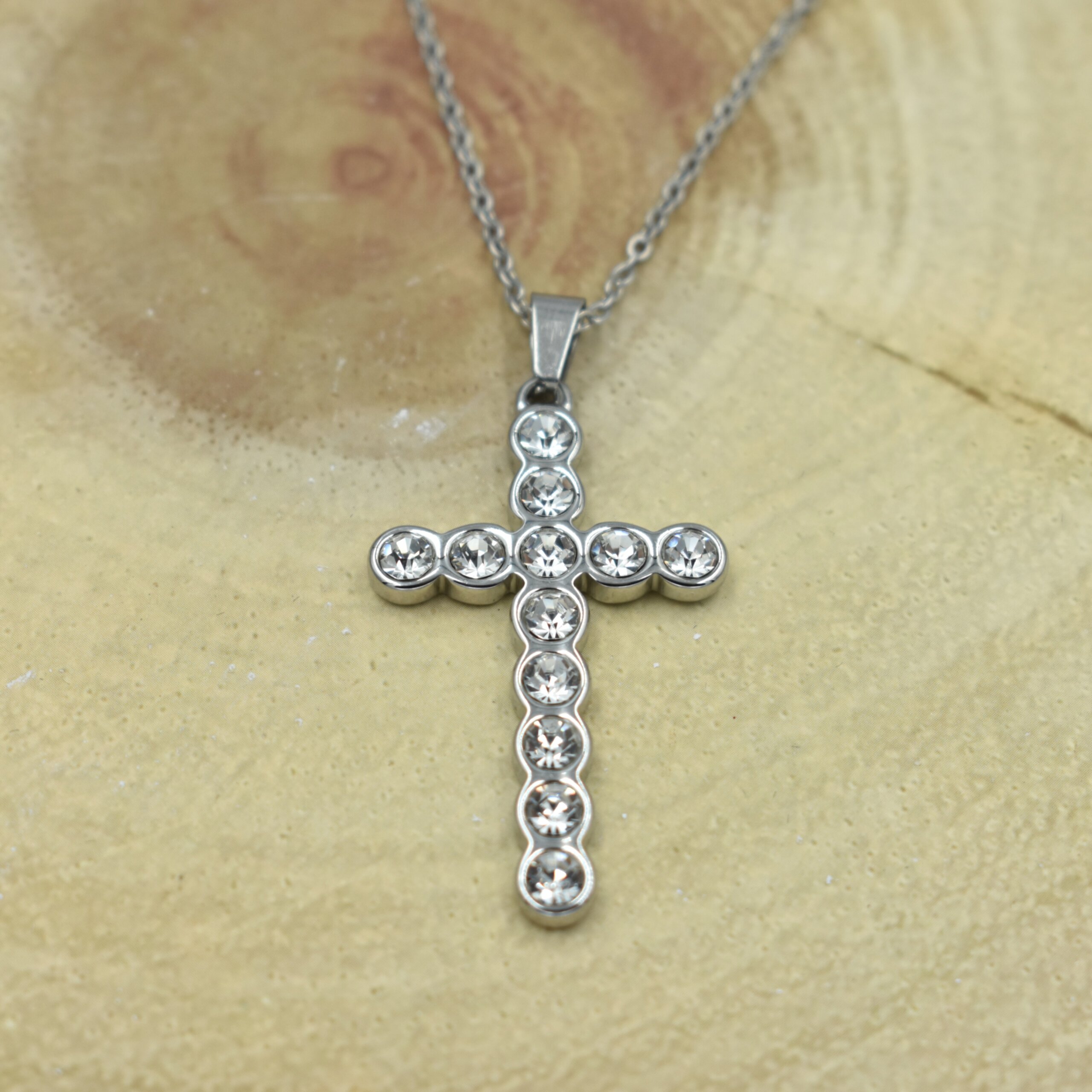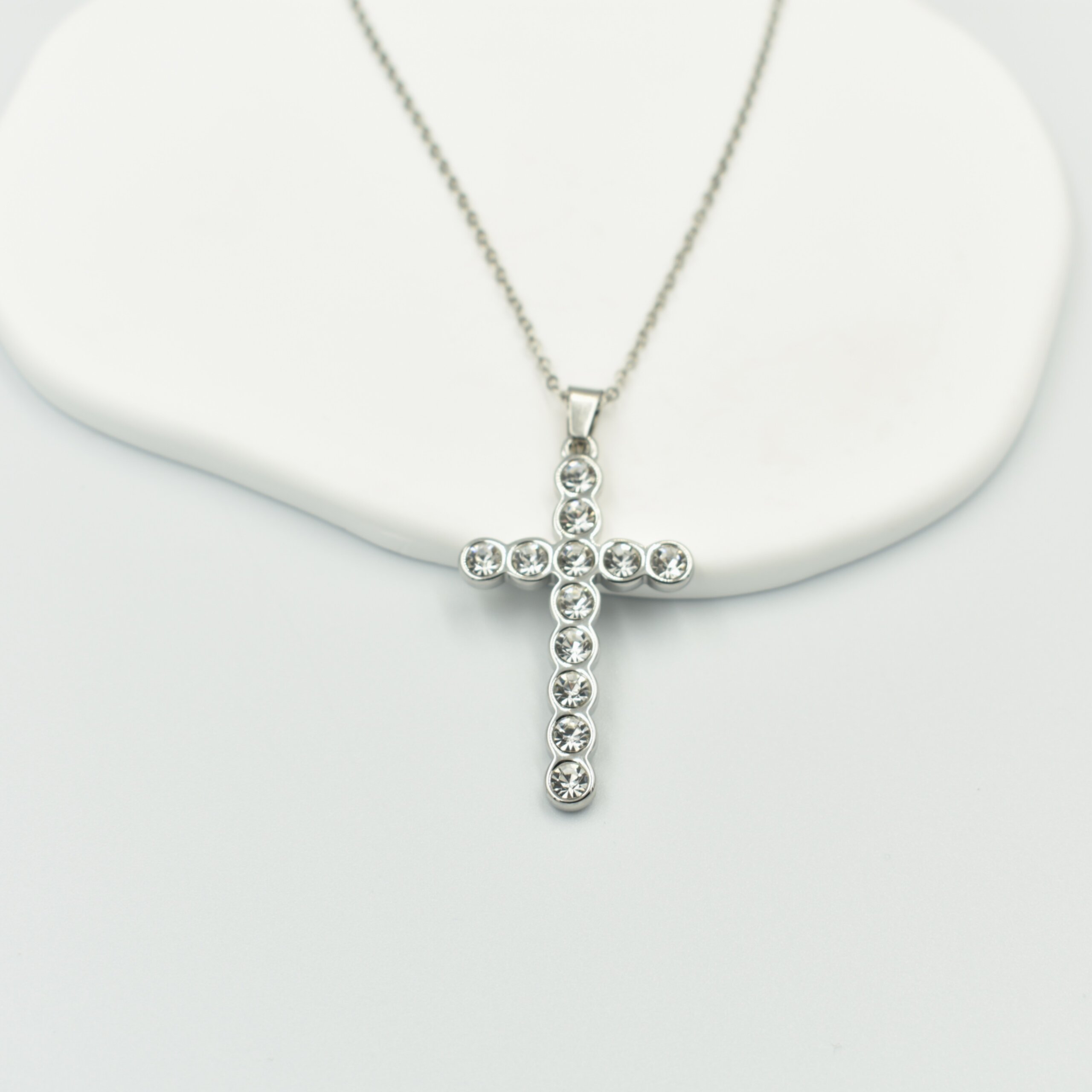 Ασημί Μεγάλος Σταυρός Με Στρογγυλά Ζιργκόν – Ανοξείδωτο Ατσάλι