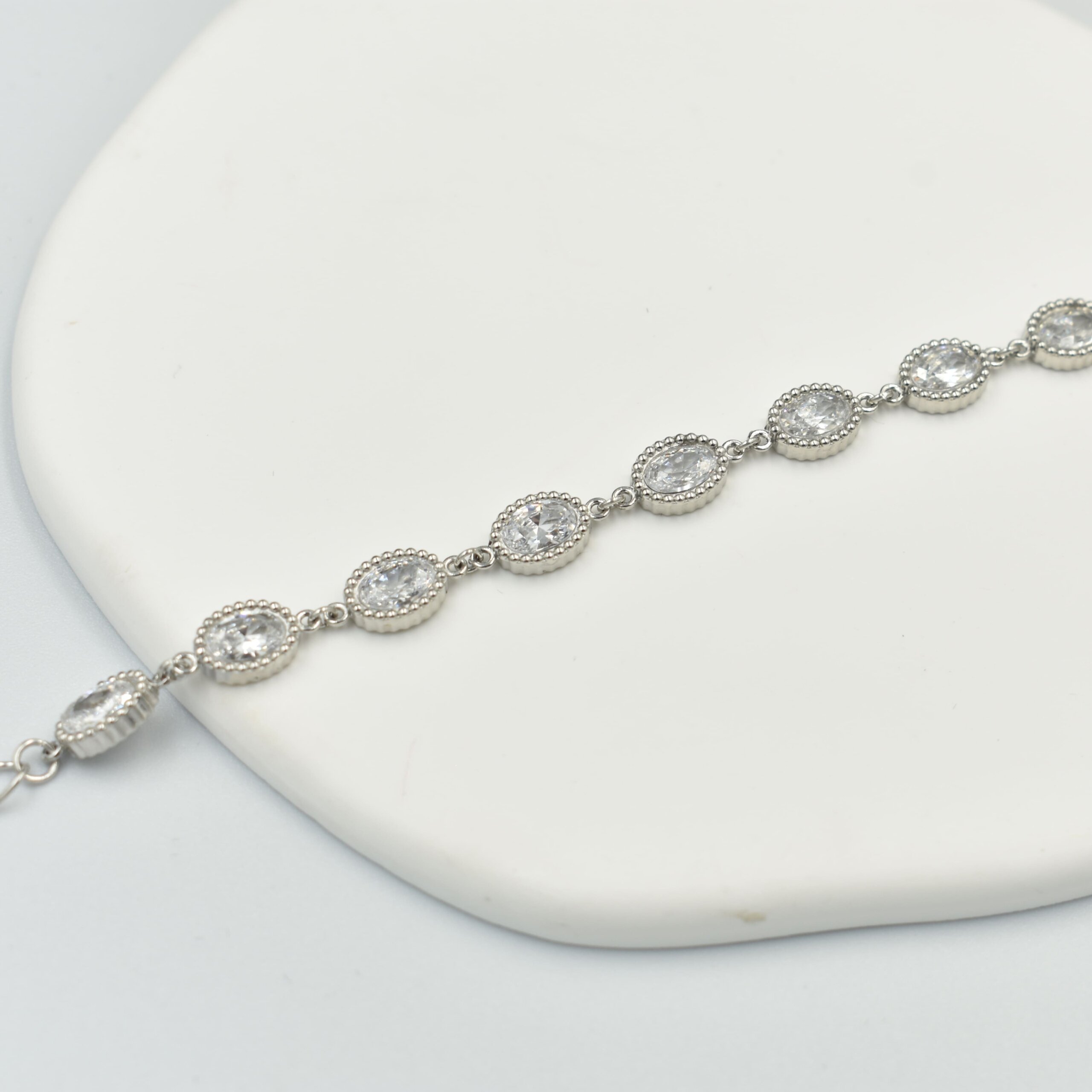 Ασημί Ριβιέρα Με Οβάλ Ζιργκόν – Ανοξείδωτο Ατσάλι