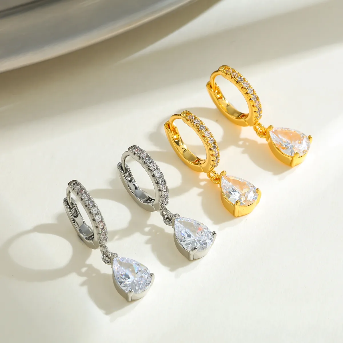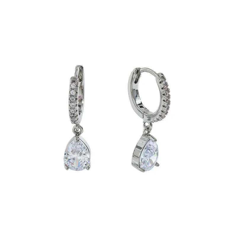 Ασημί Σκουλαρίκια Με Ζιργκόν Και Δάκρυ – Ανοξείδωτο Ατσάλι