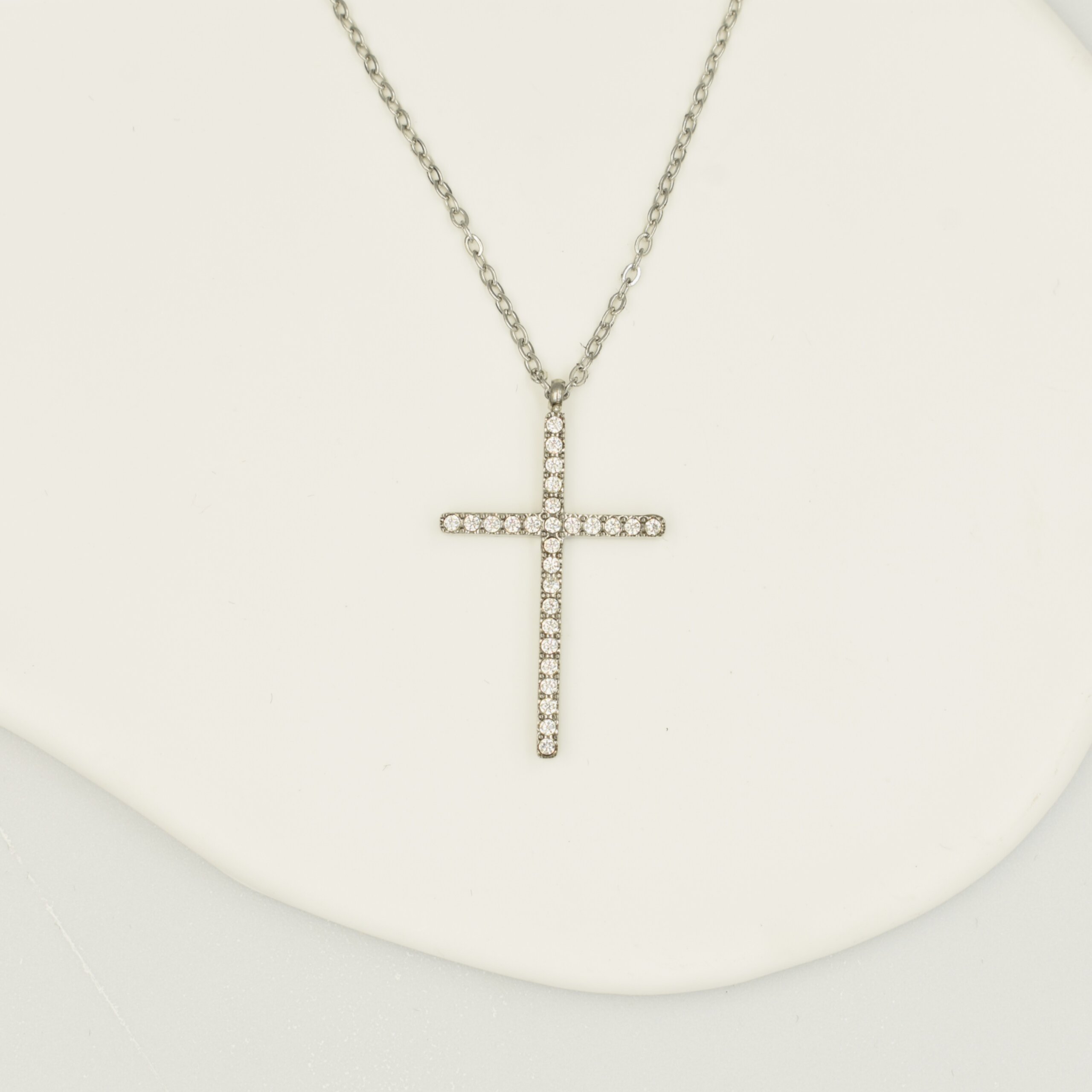 Ασημί Σταυρός Με Ζιργκόν – Ανοξείδωτο Ατσάλι