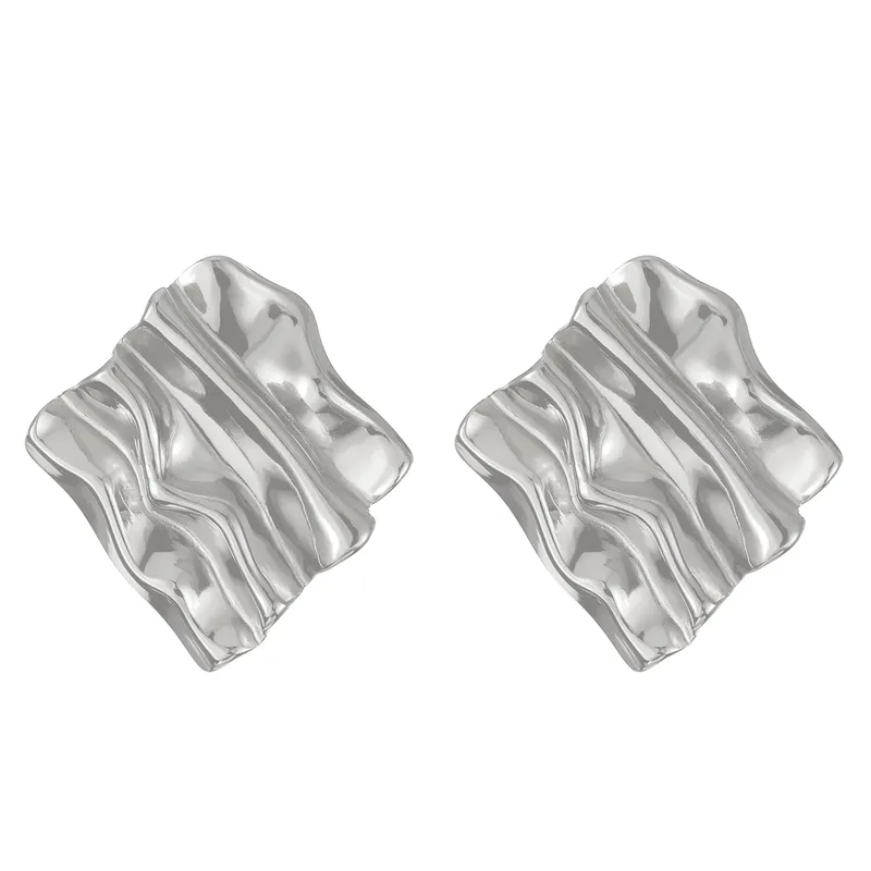 Ασημί Τετράγωνα Σκουλαρίκια Wave – Ατσάλι