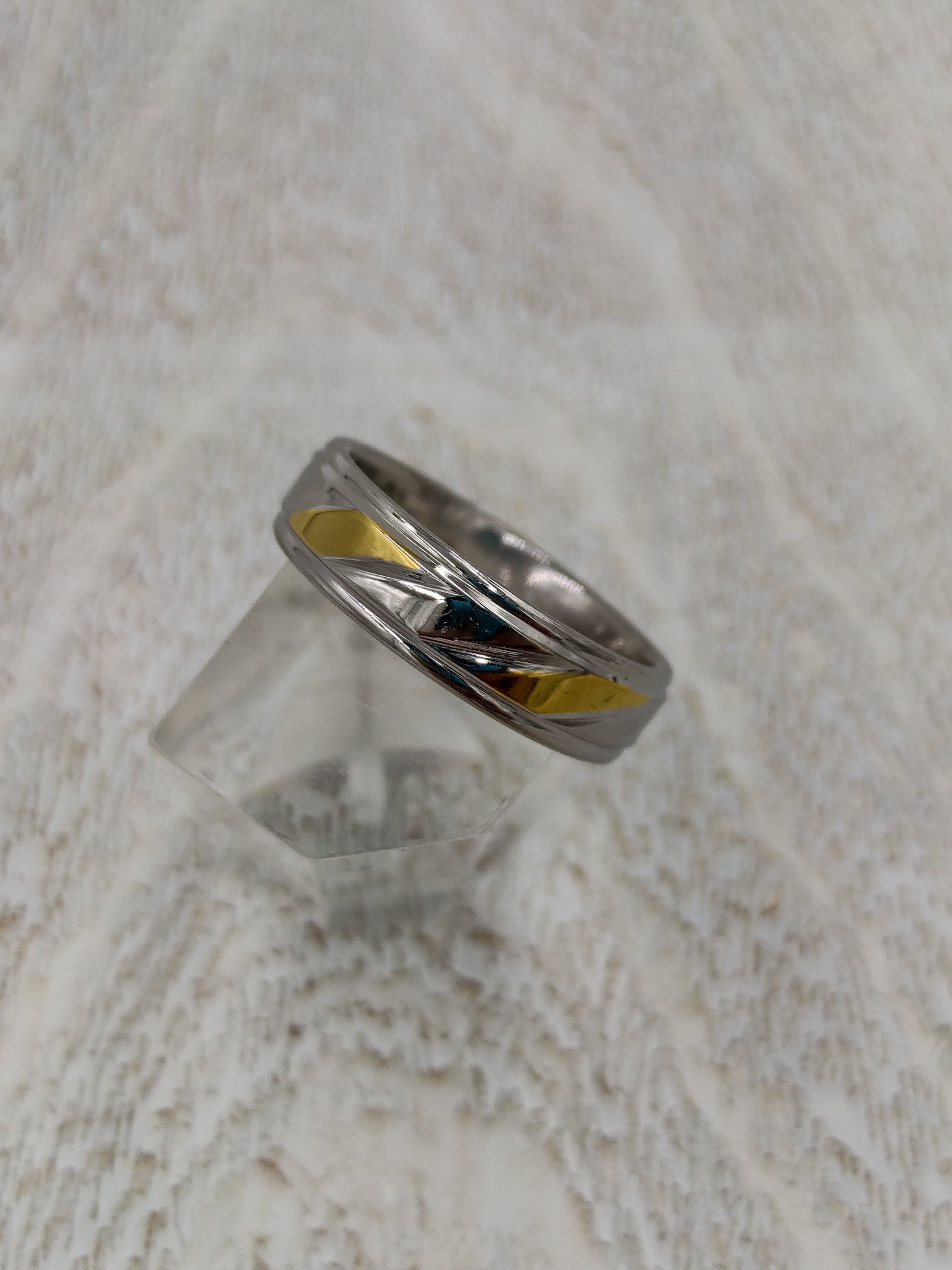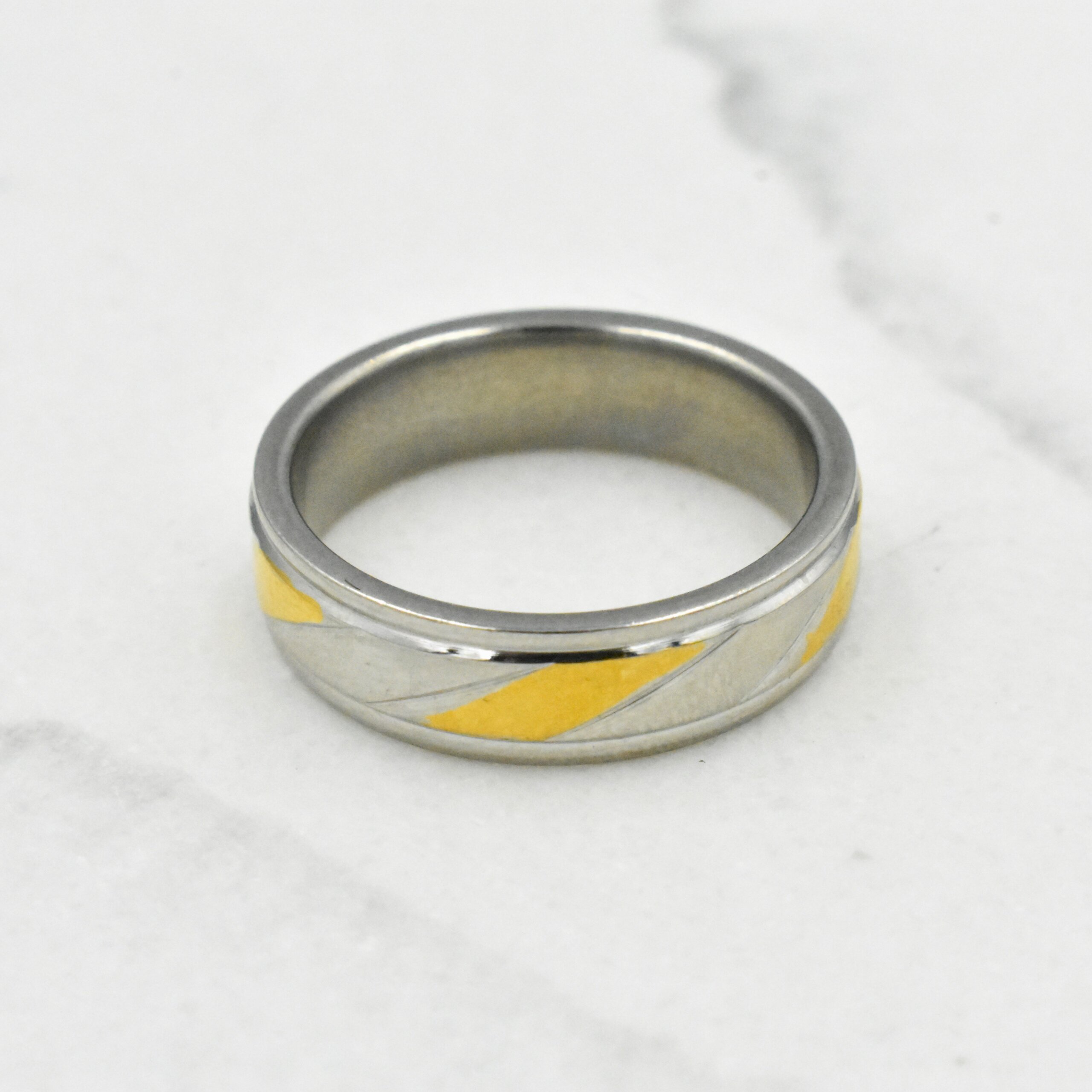 Ασημί Βέρα Με Χρυσές Ρίγες – Ανοξείδωτο Χειρουργικό Ατσάλι