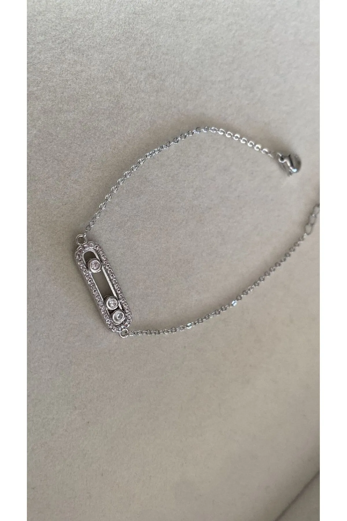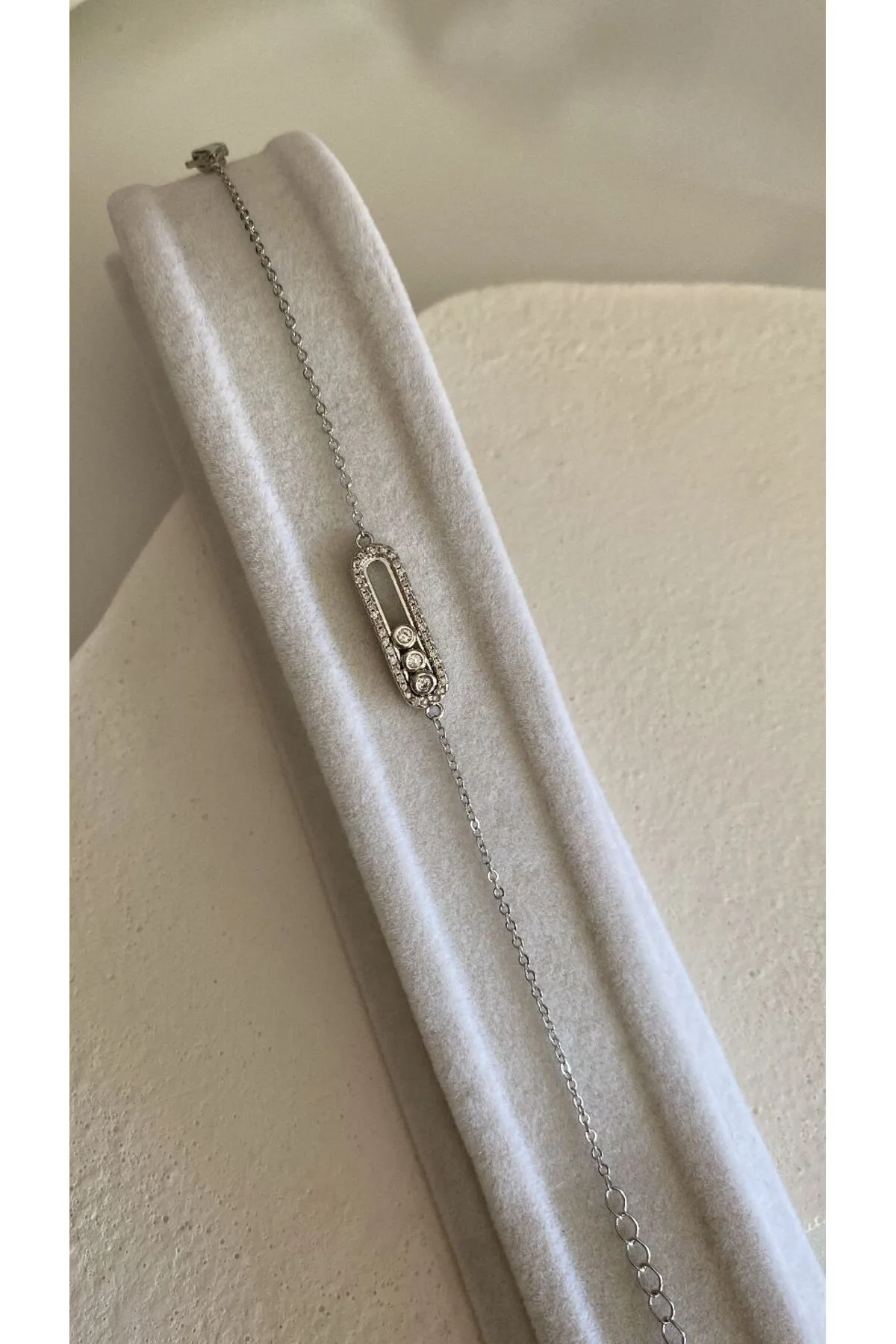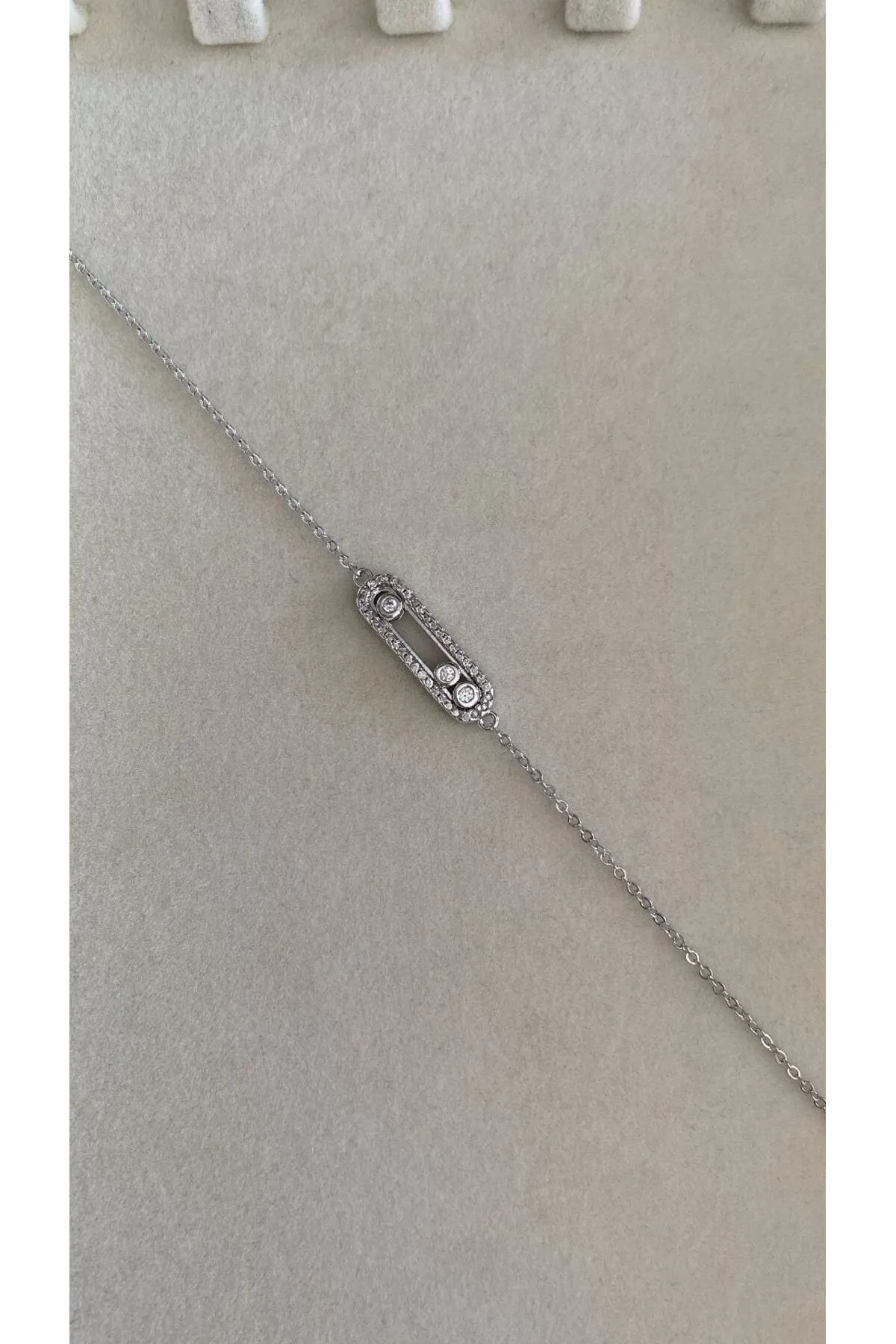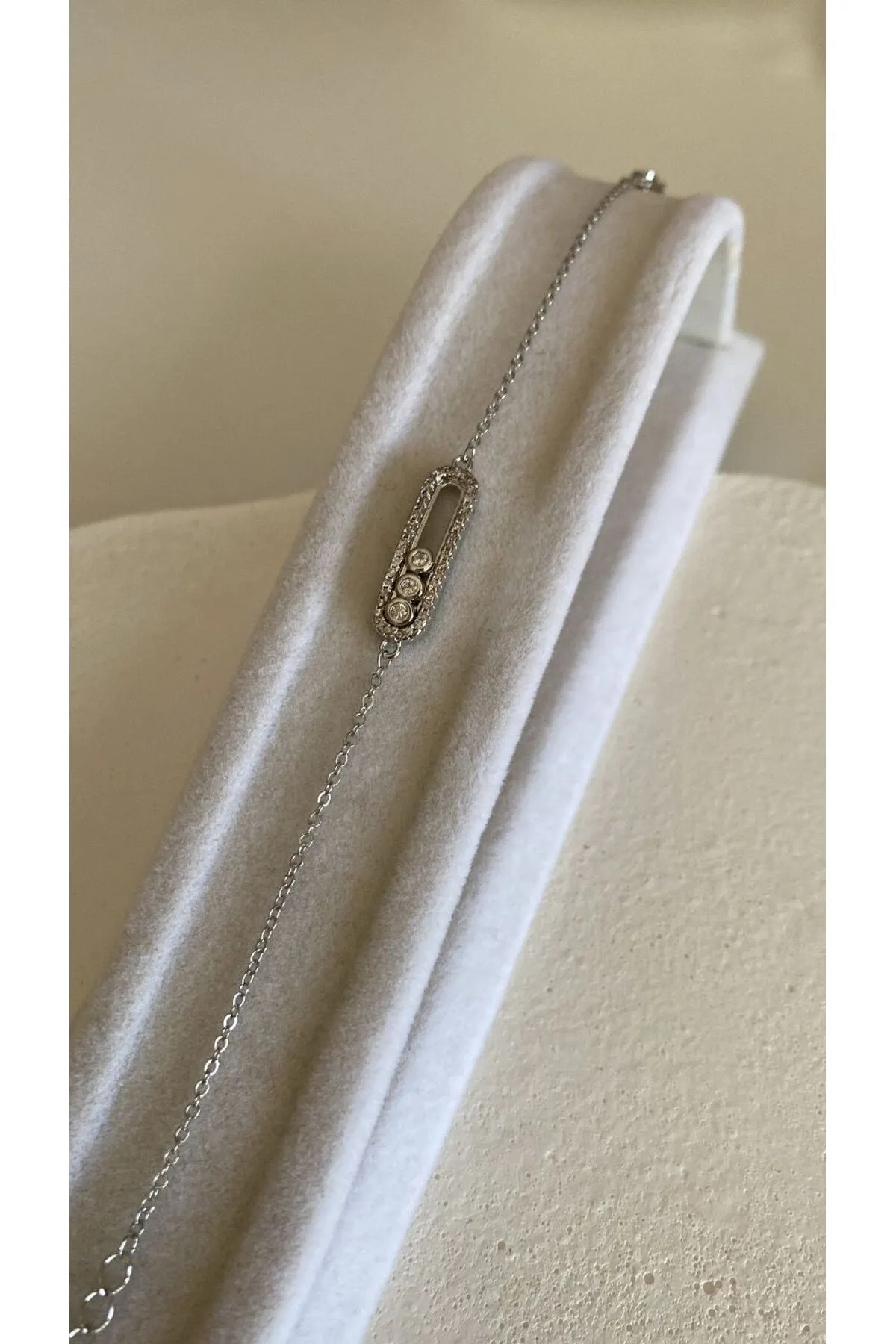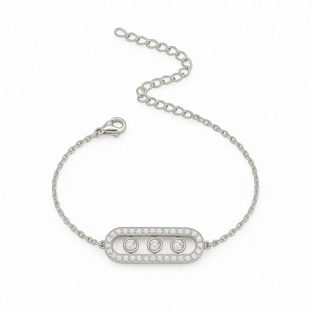 Ασημί Βραχιόλι με τρία ζιργκόν σε μπάρα από ανοξείδωτο ατσάλι