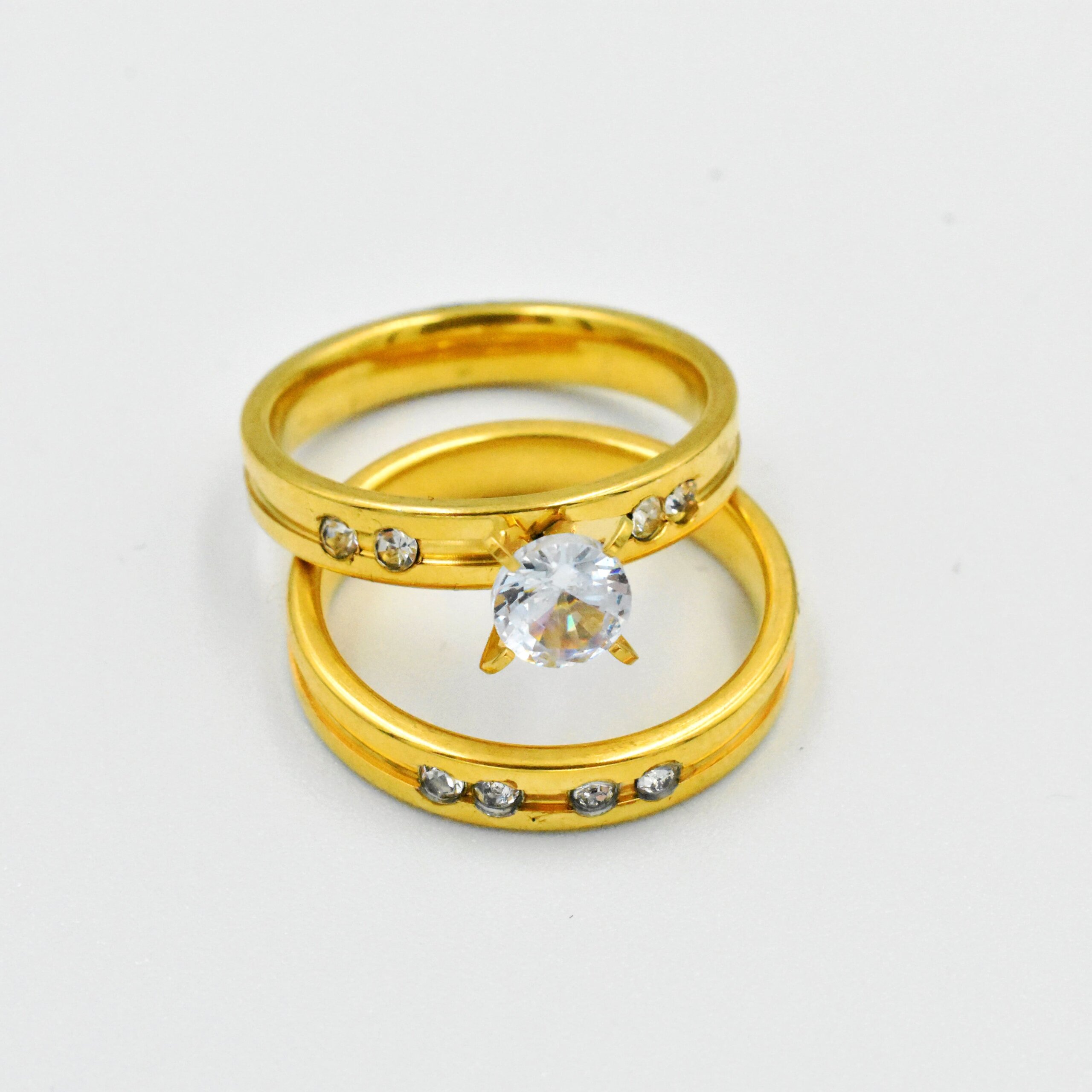 Διπλό Δαχτυλίδι Χρυσό Με Ζιργκόν – Ανοξείδωτο Ατσάλι