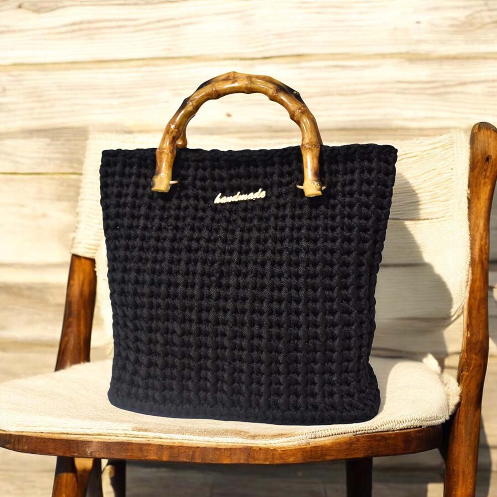 Χειροποίητη Πλεκτή Τσάντα Με Κοκάλινα Χερούλια