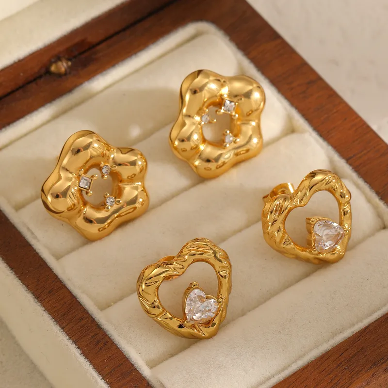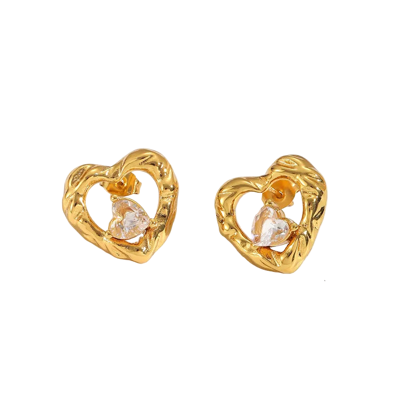 Χρυσά Σκουλαρίκια Καρδιά Με Ζιργκόν Καρδιά – Επιχρυσωμένο Ατσάλι