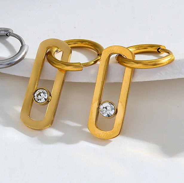 Χρυσά Σκουλαρίκια Με Μπάρα Και Ζιργκόν – Επιχρυσωμένο Ατσάλι