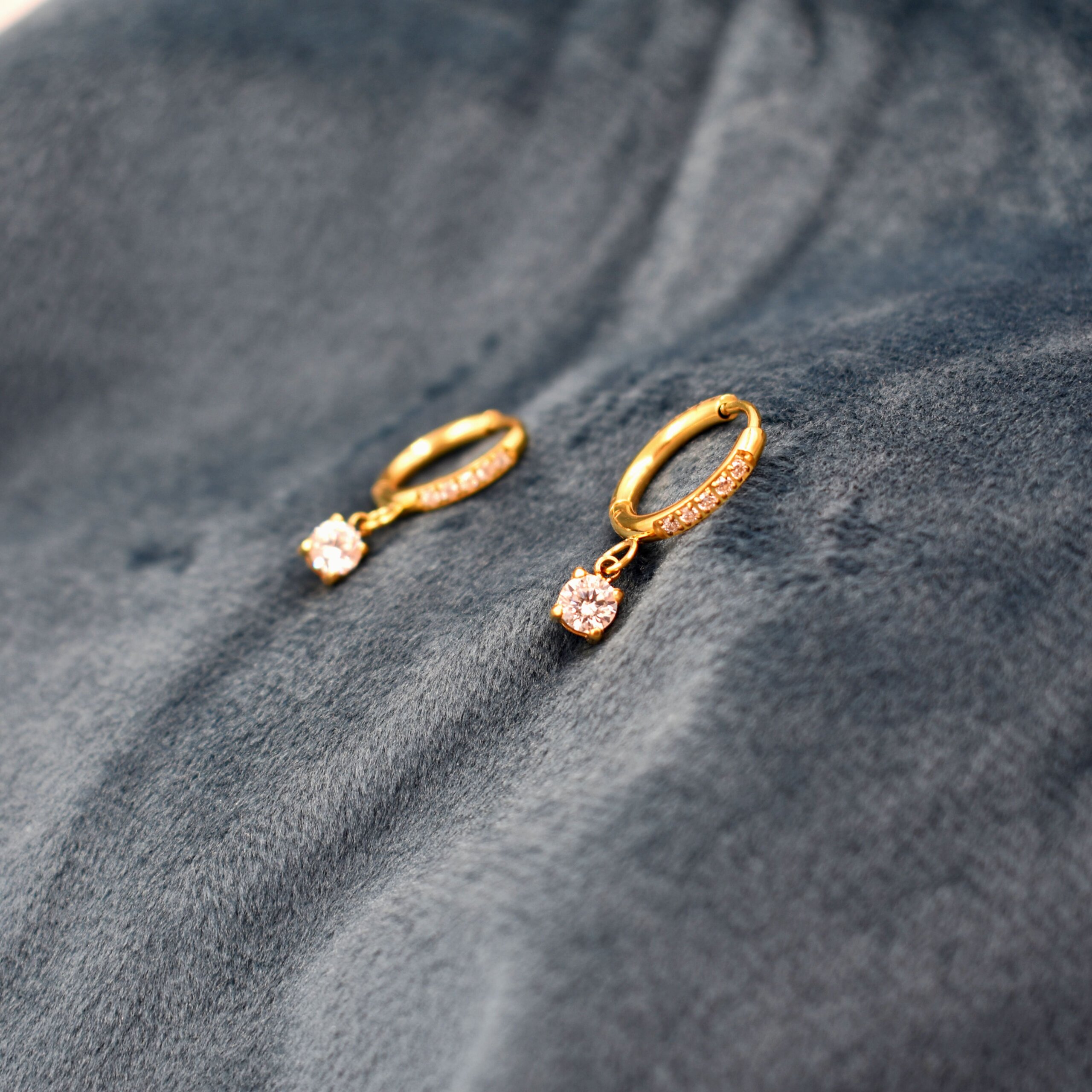Χρυσοί Κρίκοι Με Ζιργκόν Και Κρεμαστό Μοτίφ – Επιχρυσωμένο Ατσάλι