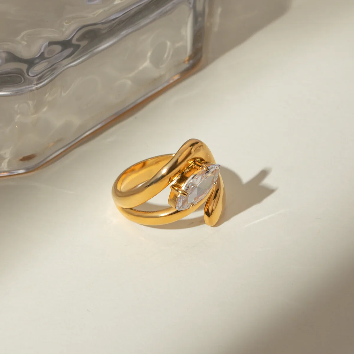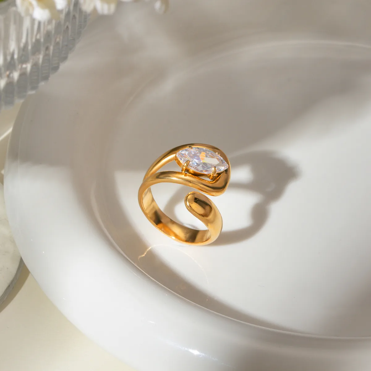 Χρυσό Δαχτυλίδι Ανοιχτό Mε Ζιργκόν – Επιχρυσωμένο Ατσάλι
