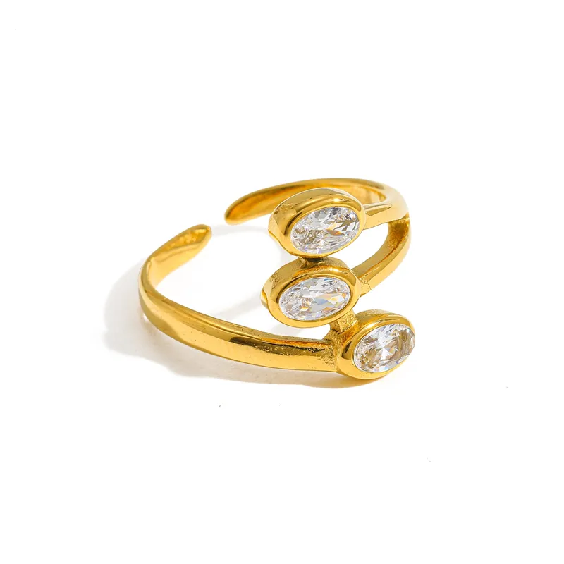 Χρυσό Δαχτυλίδι Με Τριπλό Ζιργκόν – Επιχρυσωμένο Ατσάλι