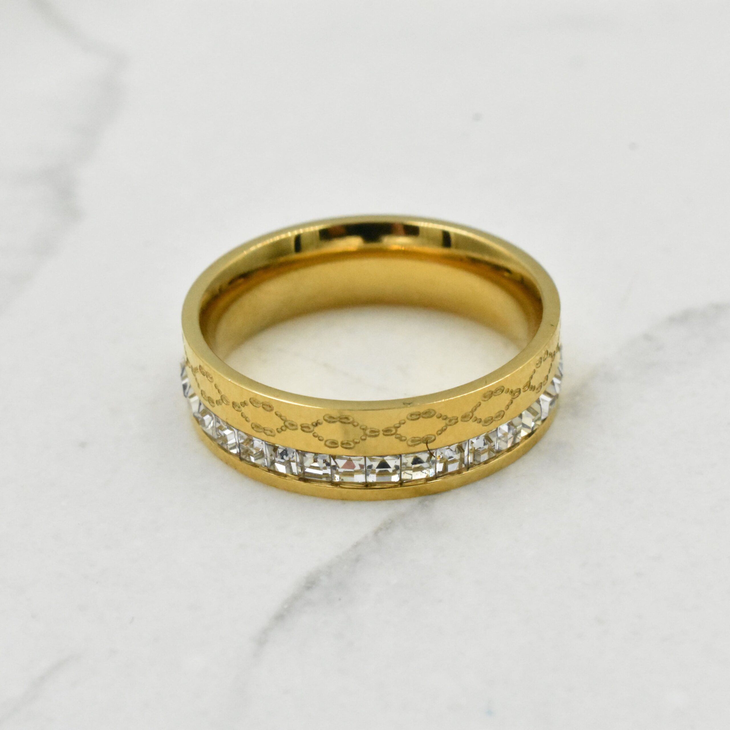 Χρυσό Δαχτυλίδι Με Ζιργκόν Και Μοτίβο – Ανοξείδωτο Ατσάλι