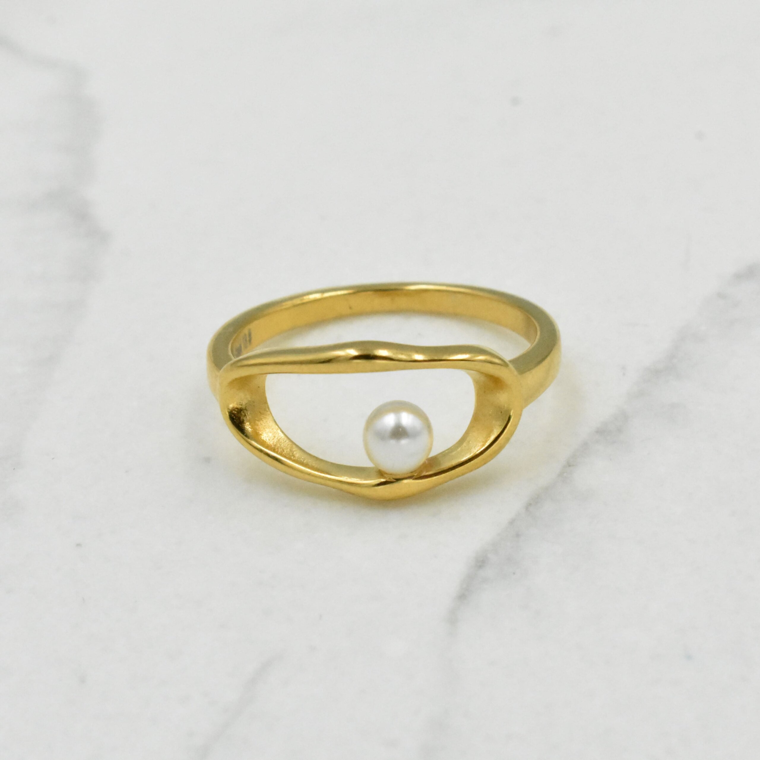 Χρυσό Δαχτυλίδι Οβάλ Με Πέρλα – Ανοξείδωτο Ατσάλι
