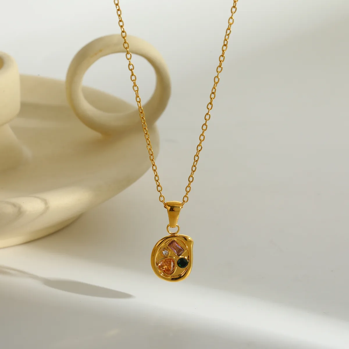 Χρυσό Κολιέ Με Πολύχρωμες Πέτρες – Επιχρυσωμένο Ατσάλι