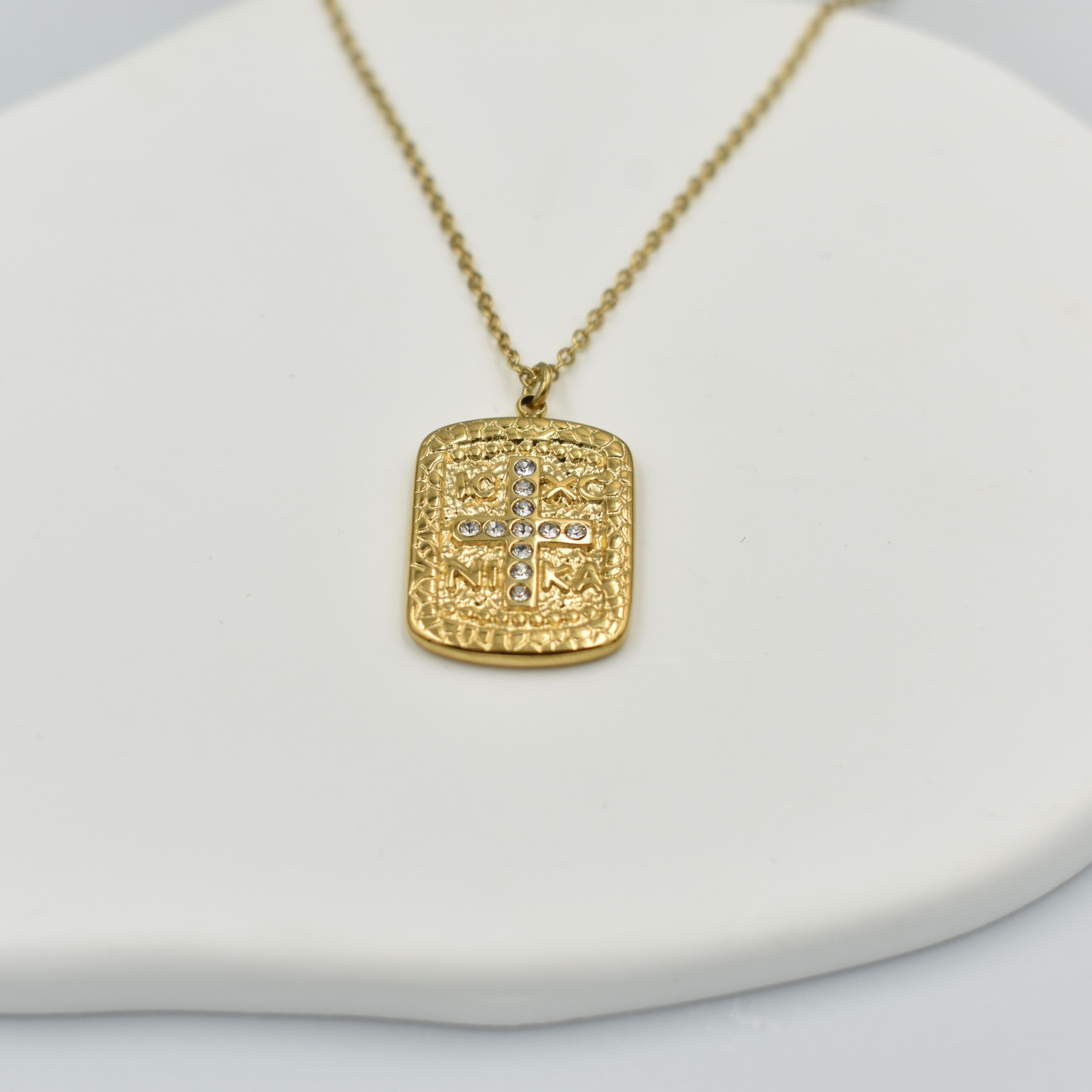Χρυσό Ορθογώνιο Κωνσταντινάτο Με Ζιργκόν – Ανοξείδωτο Ατσάλι