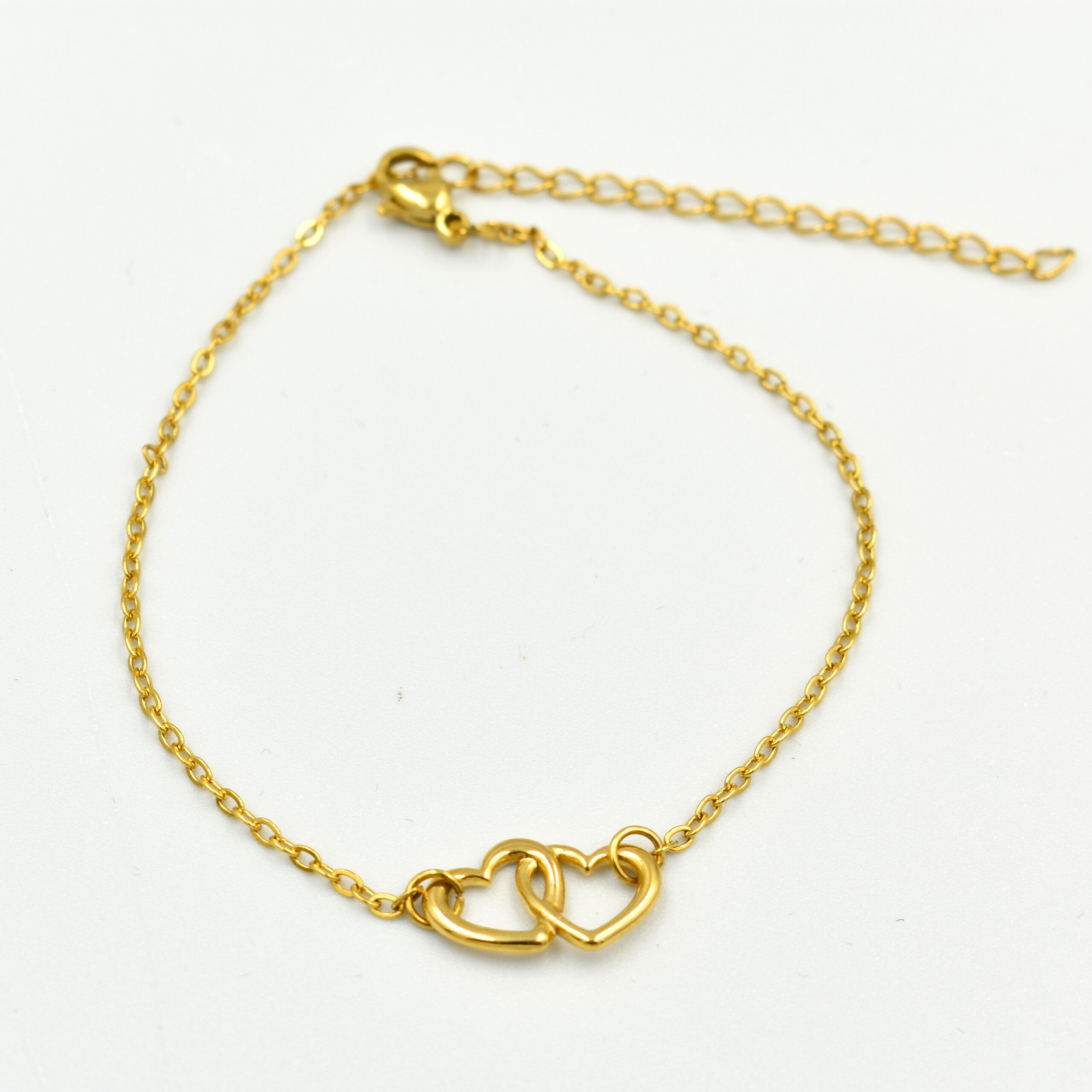 Χρυσό Βραχιόλι Με Διπλή Καρδιά – Ανοξείδωτο Ατσάλι