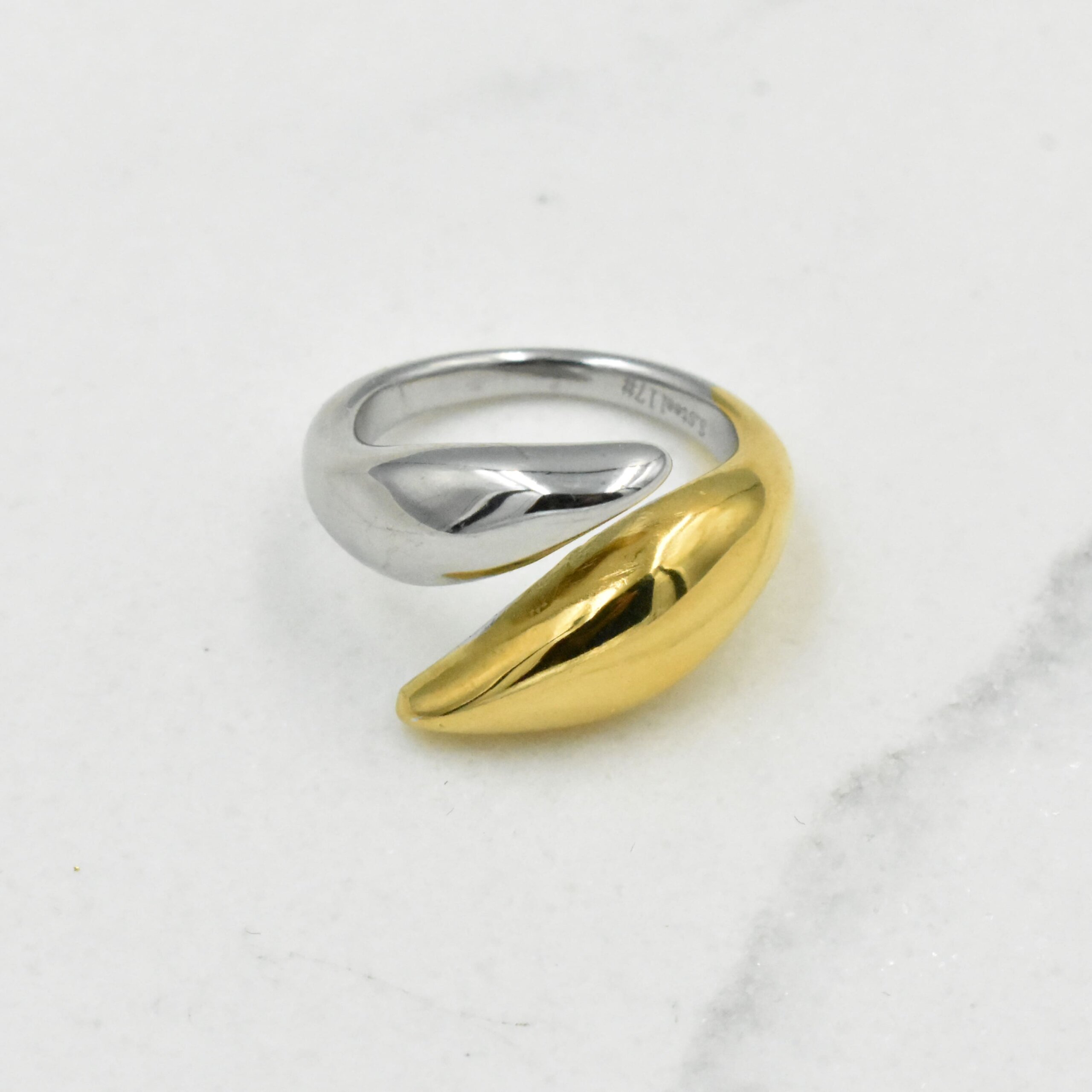 Δίχρωμο Δαχτυλίδι Με Δάκρυα – Ανοξείδωτο Ατσάλι