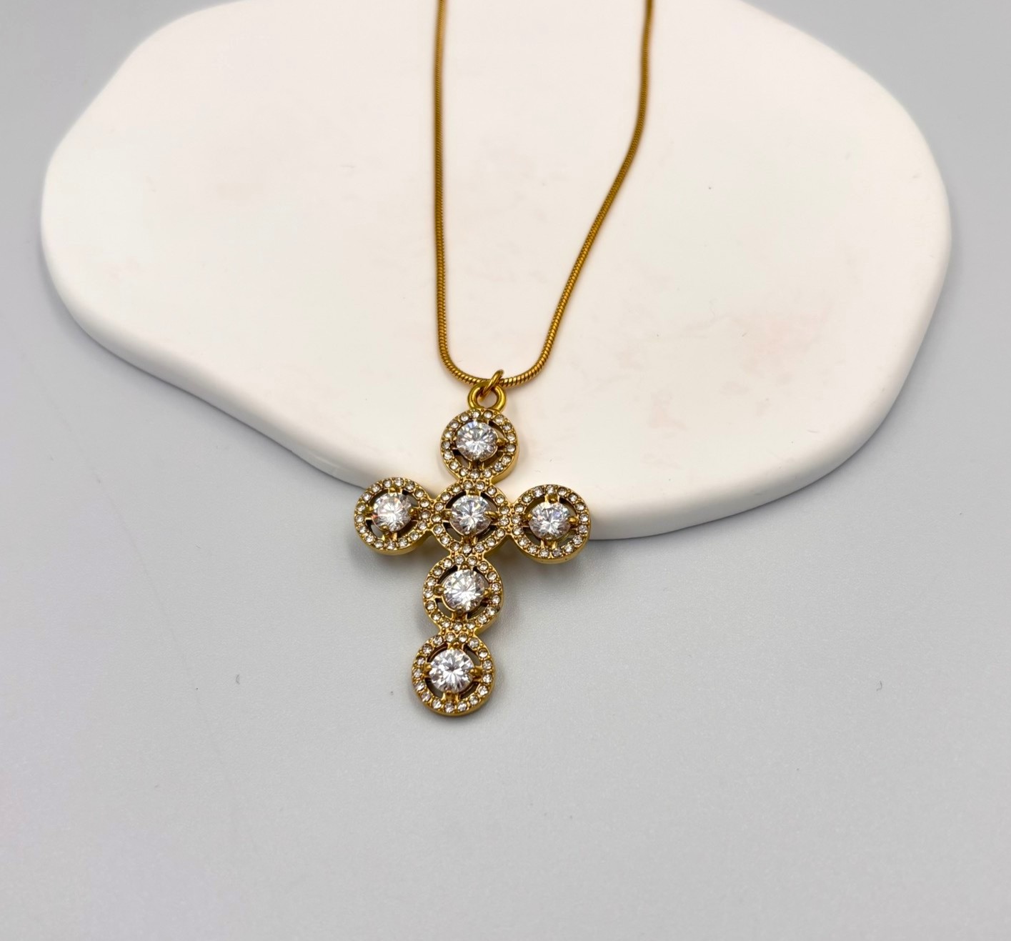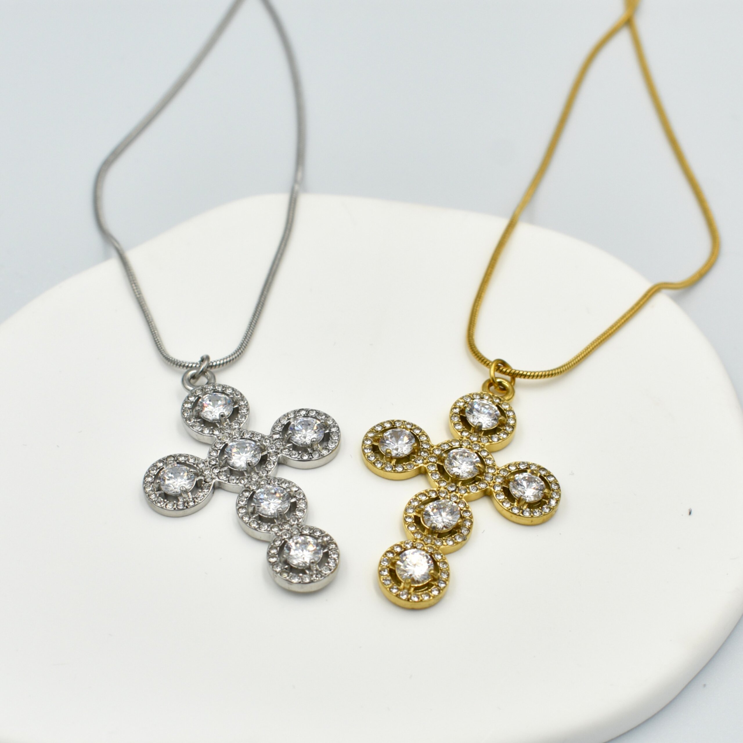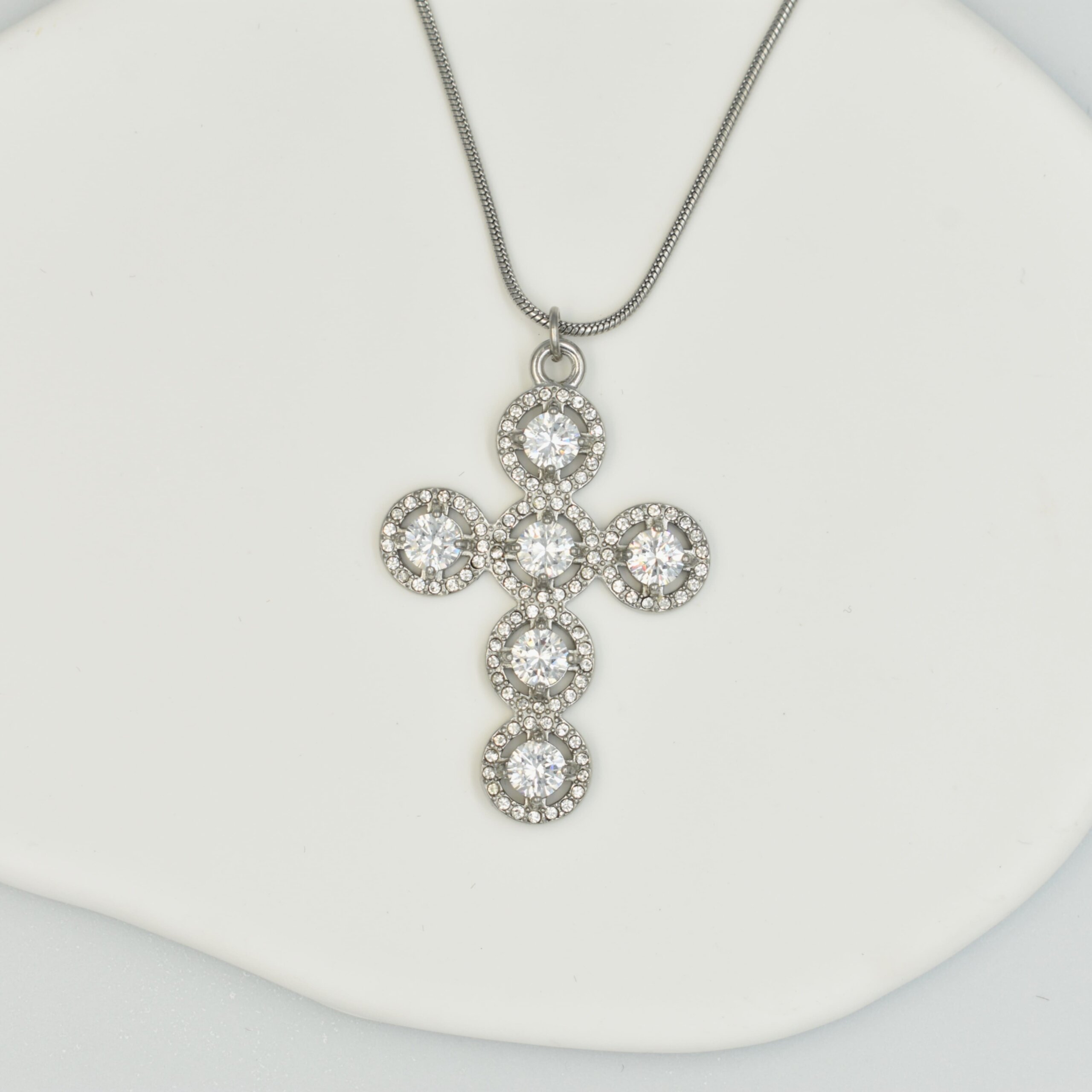 Σταυρός Με Στρογγυλά Ζιργκόν – Ανοξείδωτο Ατσάλι