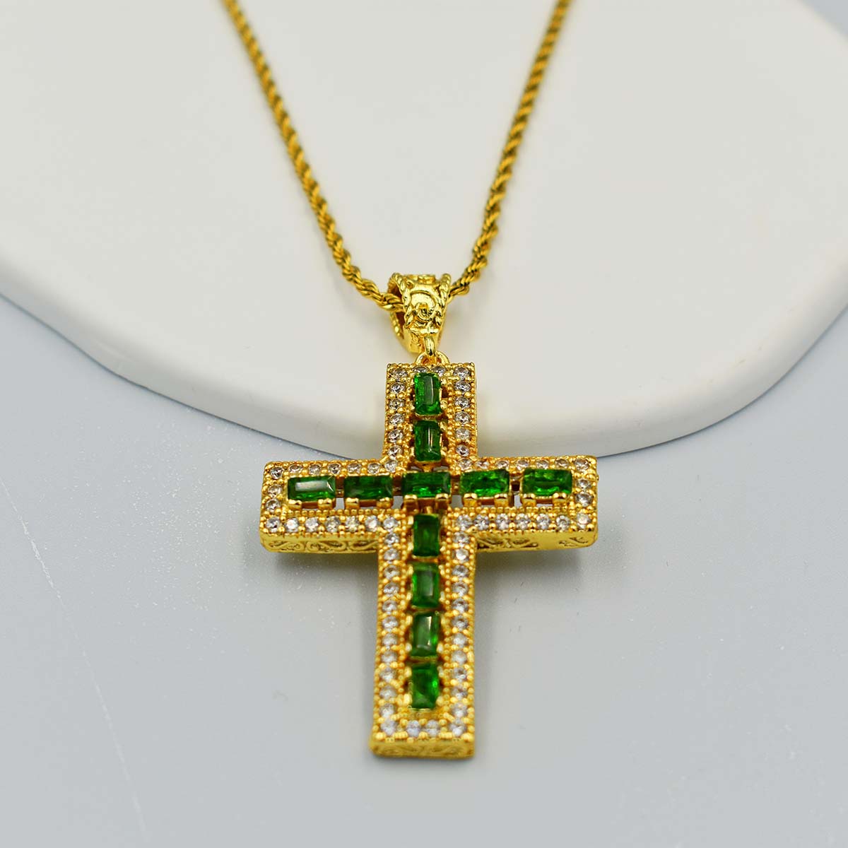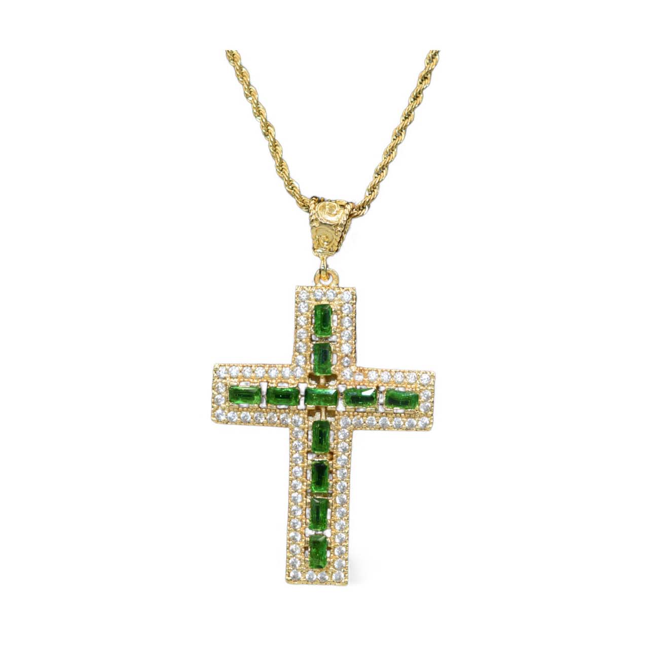 Σταυρός Με Ζιργκόν Και Πράσινες Πέτρες – Ορείχαλκος