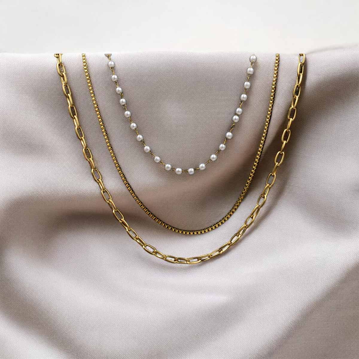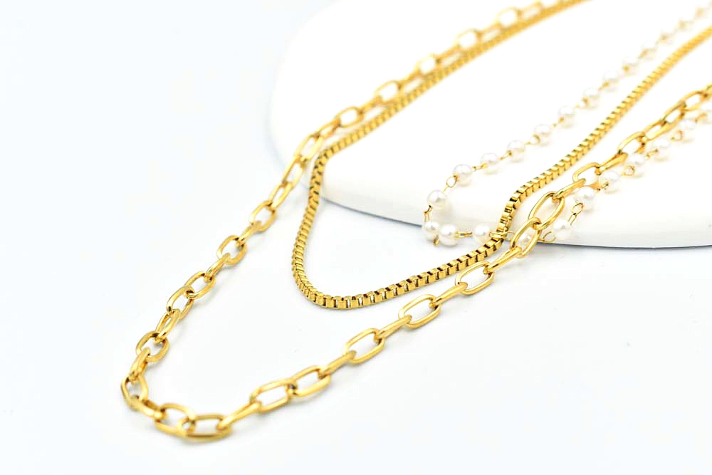 Τριπλή Αλυσίδα Λαιμού Με Πέρλες – Ανοξείδωτο Ατσάλι