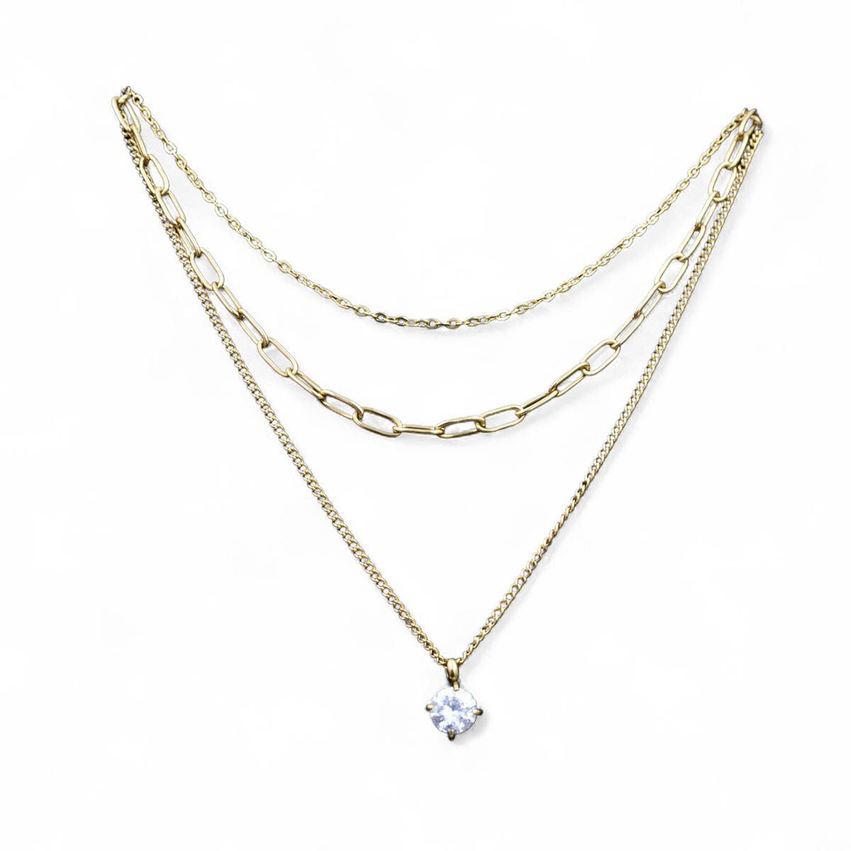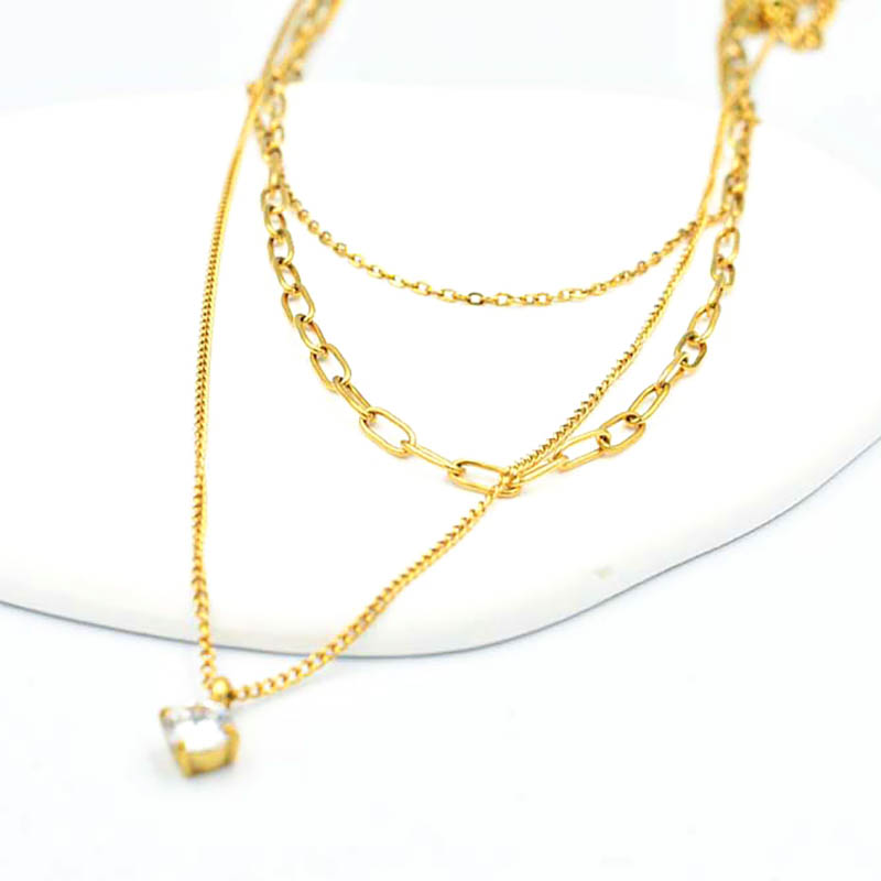 Τριπλή Αλυσίδα Λαιμού Με Ζιργκόν – Ανοξείδωτο Ατσάλι